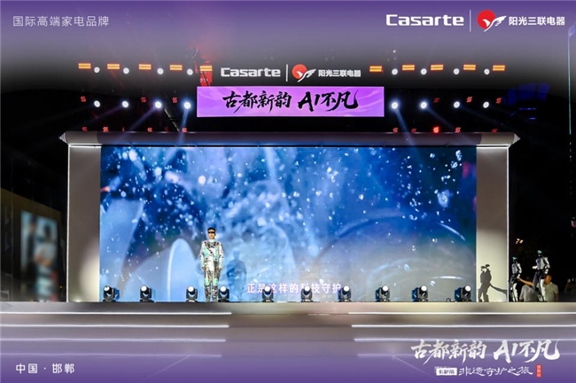 舞台之上,四幕沉浸式情景剧《未来之约》《守护之证》《回望千年》《守护之约》震撼上演。来自2050年的“未来守护者”与卡萨帝AI之眼展开跨时空对话,人机共武、非遗杂技、川剧变脸、赵女踮屣舞等节目轮番登场。从远古傩面鼓韵到未来AI全景,科技与艺术在光影中无界融合,为观众带来一场直抵心灵的视听盛宴。